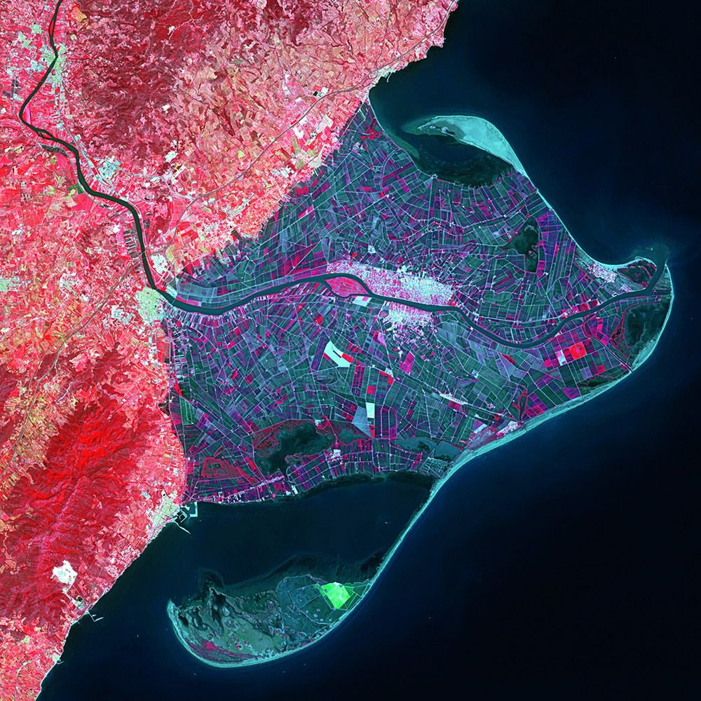 Châu thổ sông Ebro, Tây Ban Nha: Ebro là con sông dài hơn 900km ở Tây Ban Nha, đổ ra Địa Trung hải và tạo thành một vùng châu thổ sông Ebro. Phù sa phong phú và hệ thống kênh rạch nơi đây dùng để tưới tiêu cho các đồng ruộng lúa với sản phẩm là loại gạo hạt tròn rất nổi tiếng (bomba rice).