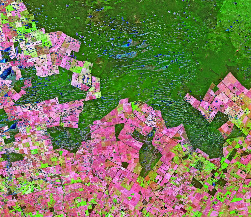Esperance, Australia: Hình ảnh này cho thấy sự xâm lấn của đất nông nghiệp vào bên trong khu rừng ở phía bắc thành phố Esperance. Trong khoảng 1990 tới 2010, Úc mất đi khoảng 260 ngàn héc ta rừng hoặc 0,17% diện tích rừng toàn quốc bởi nông nghiệp và sự phát triển của đô thị.