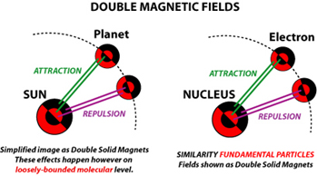Kỹ sư hạt nhân Mehran Keshe đưa ra tiền đề về sự tương tác của 1 cặp từ trường nằm trong lõi của các ngôi sao, các hành tinh, và cả Trái đất. Cặp từ trường này cũng xác định sự tương tác giữa các nguyên tử.