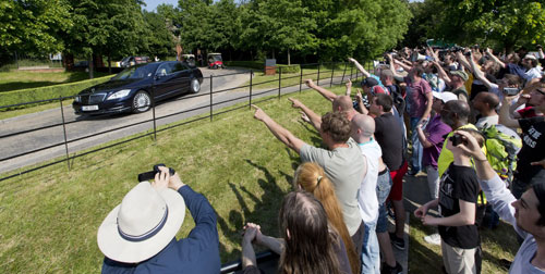Biểu tình phản đối Hội nghị Bilderberg 2013 trước khách sạn Grove - Ảnh: AFP |